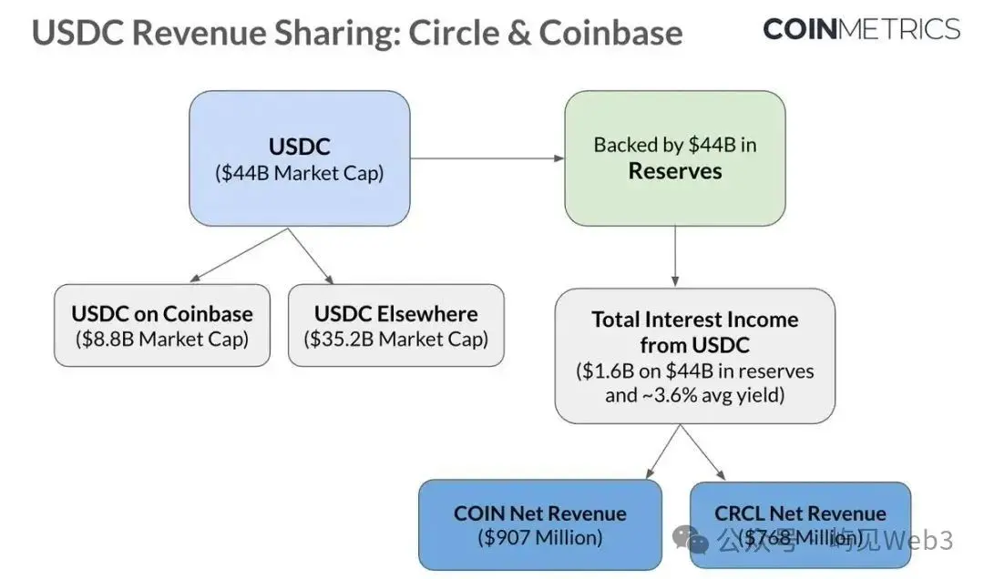 بعبارة أخرى، USDC التي تعب عليها Circle بجهد، نصف أرباحها يُقسم مع Coinbase. كأنها البنك المركزي يطبع النقود، ولكن يتوجب عليه دفع نصف الضرائب على الصكوك للبنك التجاري.